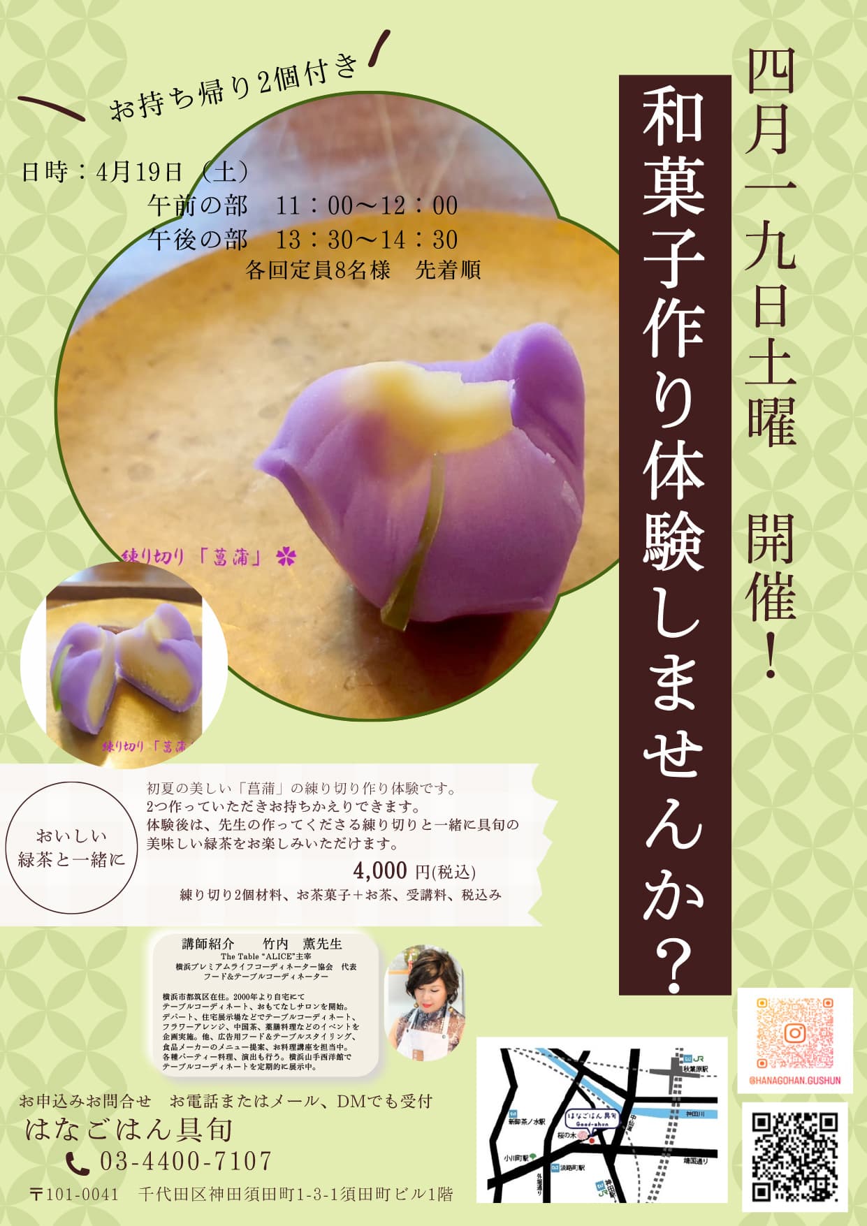 - 申し込み先:はなごはん具旬 HP